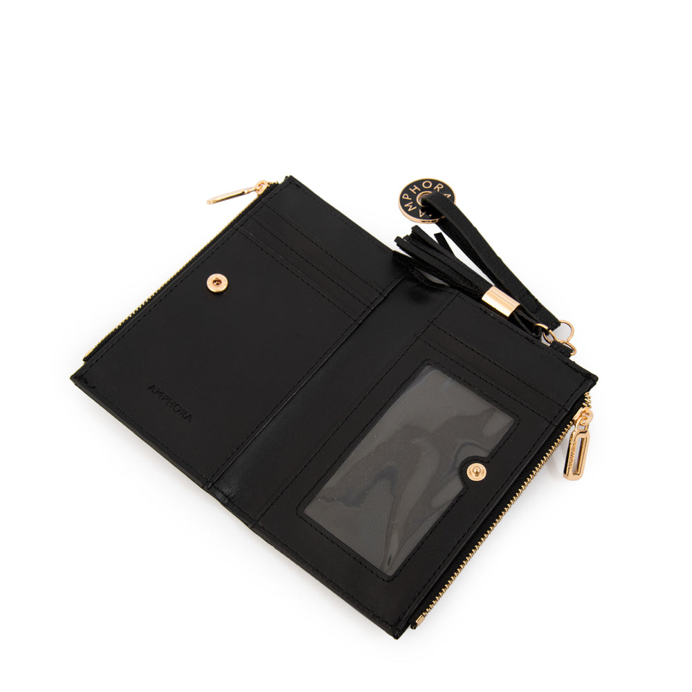 La billetera Etiopía negra en tamaño pequeño es ideal para llevar lo justo sin perder elegancia.