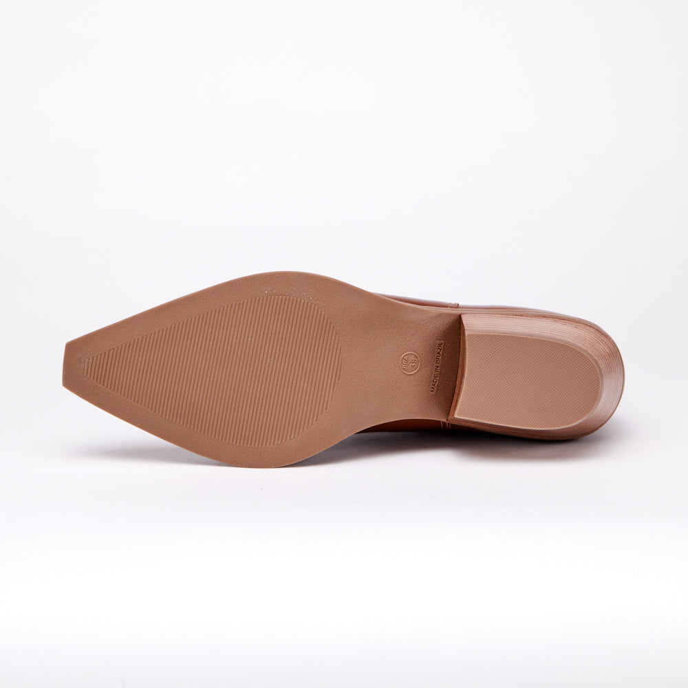 Con un taco de 3 cm, Samy se inspira en el clásico estilo western, este botín de color café y confeccionado en cuero, combina lo casual con un toque urbano, creando un diseño atemporal y versátil que complementa cualquier outfit.